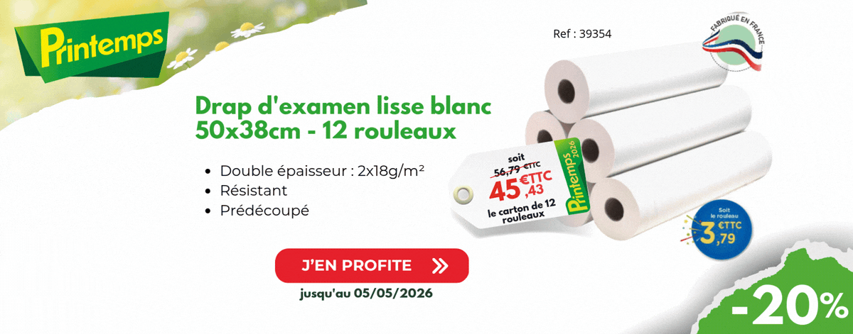 Drap d'examen ouaté lisse 50x35 cm M'Roll - Carton de 12 rouleaux