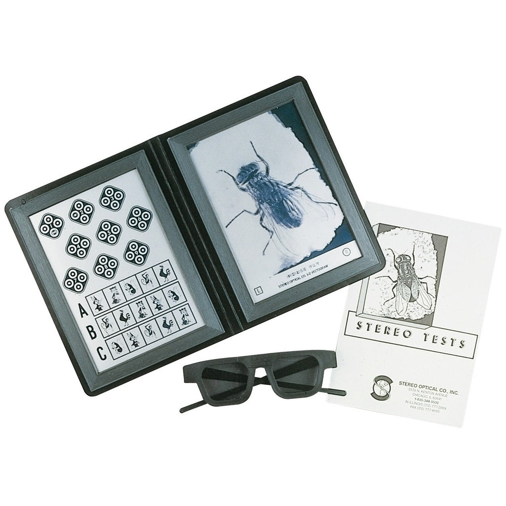 Grâce aux lunettes à filtres polarisants croisés, ce test permet de déterminer la qualité du sens stéréoscopique de près, en vision périphérique.