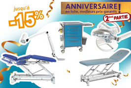 Divans d'examen, table de massage, lampes d'examen... en promotion Anniversaire !