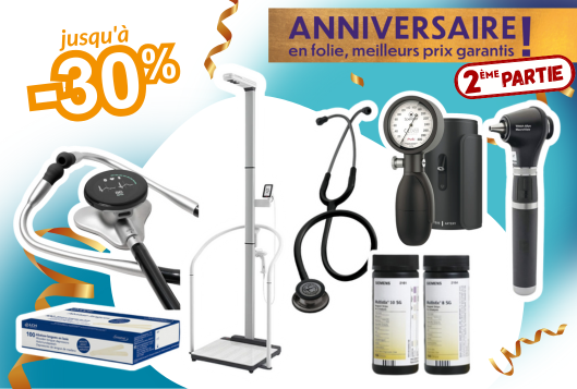 Stéthoscopes Littmann, otoscope Macroview, abaisse-langue, bandelettes urinaires , ECG, pèse-personne... en promotion Anniversaire !