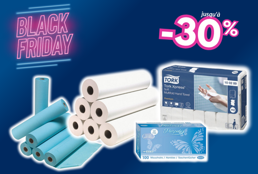 Draps d’examen, essuie-mains, essuie-tout, mouchoirs… en Promo Black Friday !
