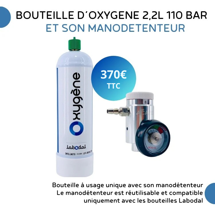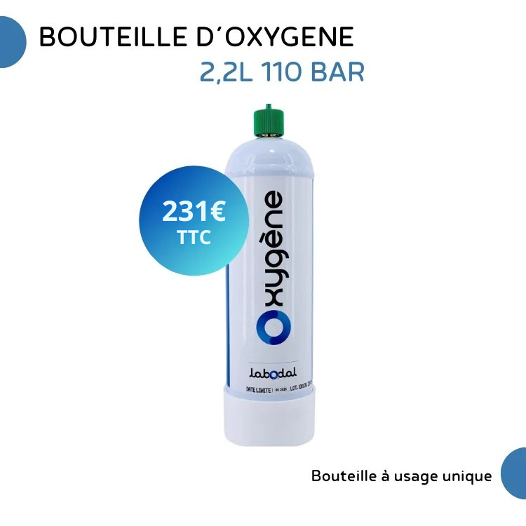 • 1 bouteille d'oxygène médicinal Labodal de 2,2L (à 110 bar de pression)