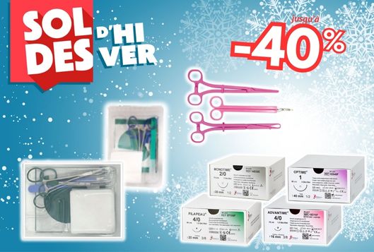 Sets stériles à usage unique, sets de sutures, sets d’intervention, set de pose de stérilet, set DIU, sutures résorbables, sutures non résorbables… en Soldes !