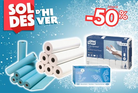 Draps d’examen, essuie-mains, essuie-tout, mouchoirs… en Soldes !