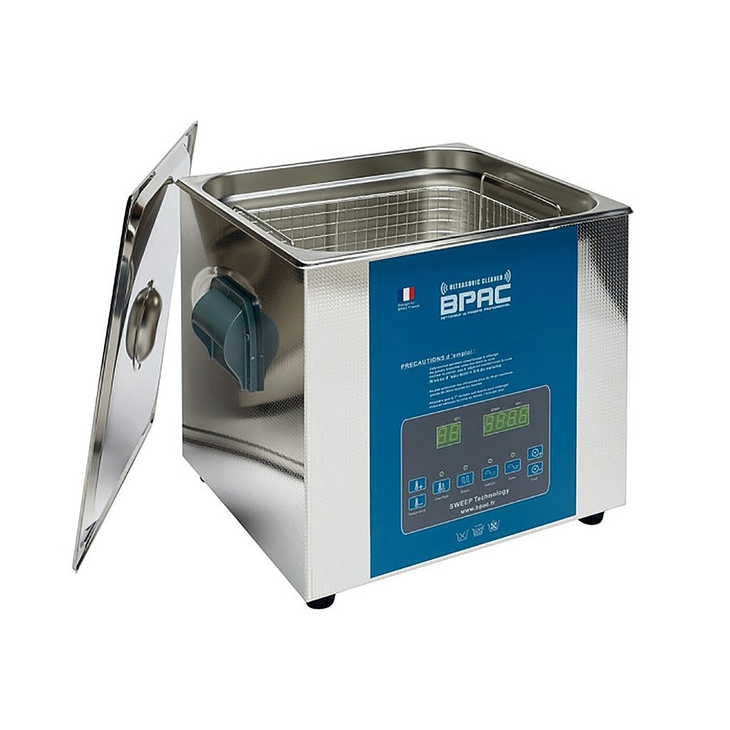 Bac à ultrasons Bac à ultrason 600 watts avec la technologie SWEEP, TURBO et DEGAS.Usage : Professionnel : Mécanique auto-moto nautisme, Nettoyage de gros carburateurs (carburateurs Weber ou américains) ou de petites rampes de carburateur, Atelier maintenance aéronautique, Horlogerie comtoise, nettoyage bavurage pièces en impression 3D, électronique (désoxydation des cartes) ...Domestique : Mécanique automoto nautisme, matériel de plongée, douilles de tire, armes de poing, argenterie, bijoux, lunettes, appareil dentaire, modélisme, disque vinyle, restauration, voitures et motos anciennes...Points forts :Fonction SWEEP : meilleure répartition des ondes dans le bain, nettoyage plus efficace (surtout pour les petites pièces), élimine les ondes stationnaires néfastes aux pièces fragiles, élimine les zones "mortes" dans le bain.FonctionTURBO : pour une puissance maximale.Fonction dégazage : utile pour démarrer plus efficacement avec un nouveau bain et pour applications de laboratoire, élimine les microbulles d'air ou de gaz du bain pouraccroître l'efficacité des ultrasons. Pour les amateurs de vins, utilisez cette fonction pour dégazer une bouteille de vin et régalez-vousCaractéristiques : Cuve: inoxMinuterie : mécanique 0 à 99 min, arrêt automatique des ultrasons.Puissance ultrasons : 600 Watts crête (6 transducteurs 40kHz - 360 watts efficace).Puissance de chauffage : 400WattsTempérature : Réglage de température 0 à 80° par thermostat électronique digital.Affichage simultané T°actuelle+Minuteur.Circuit de chauffe : indépendant des ultrasons, usage NON-STOP.Vanne de vidange : pour vider proprement la cuve.Éléments fournis avec la cuve : panier inox maille 10mm + couvercle inox fournis.Homologation : normes CE+RoHS