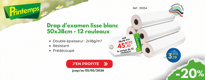 Drap d'examen ouaté lisse - 50 x 38cm - Carton de 12 rouleaux