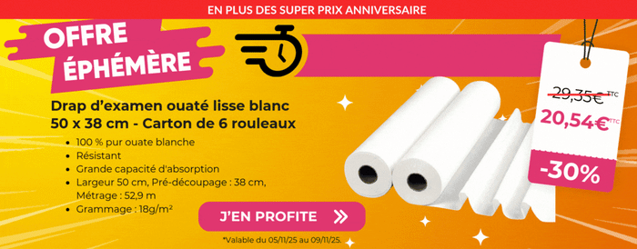 Drap d'examen ouaté lisse - 50 x 38cm - Carton de 12 rouleaux
